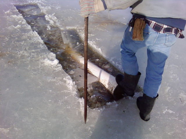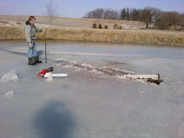 * Here are a few photos of Jim and Darrel working on a malfunctioning dry hydrant March 12th. "Jim, can you swim!"